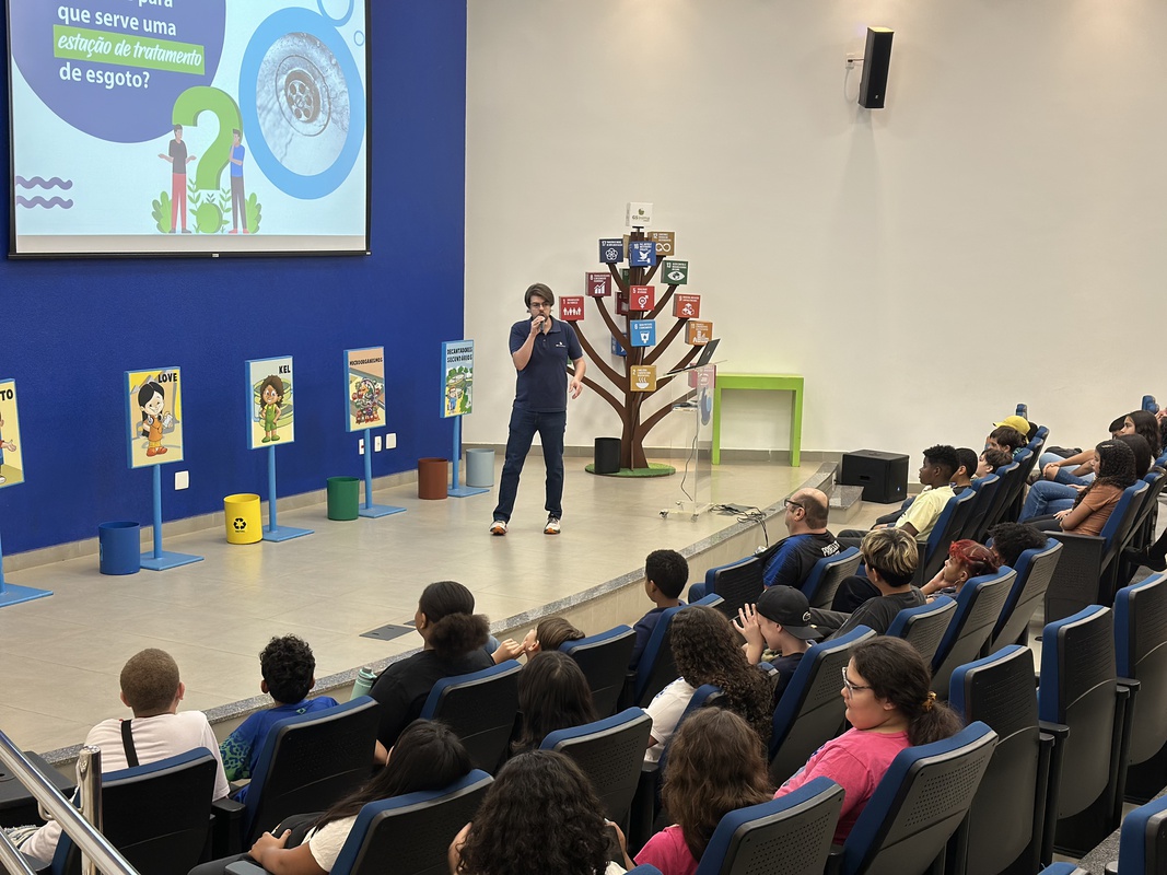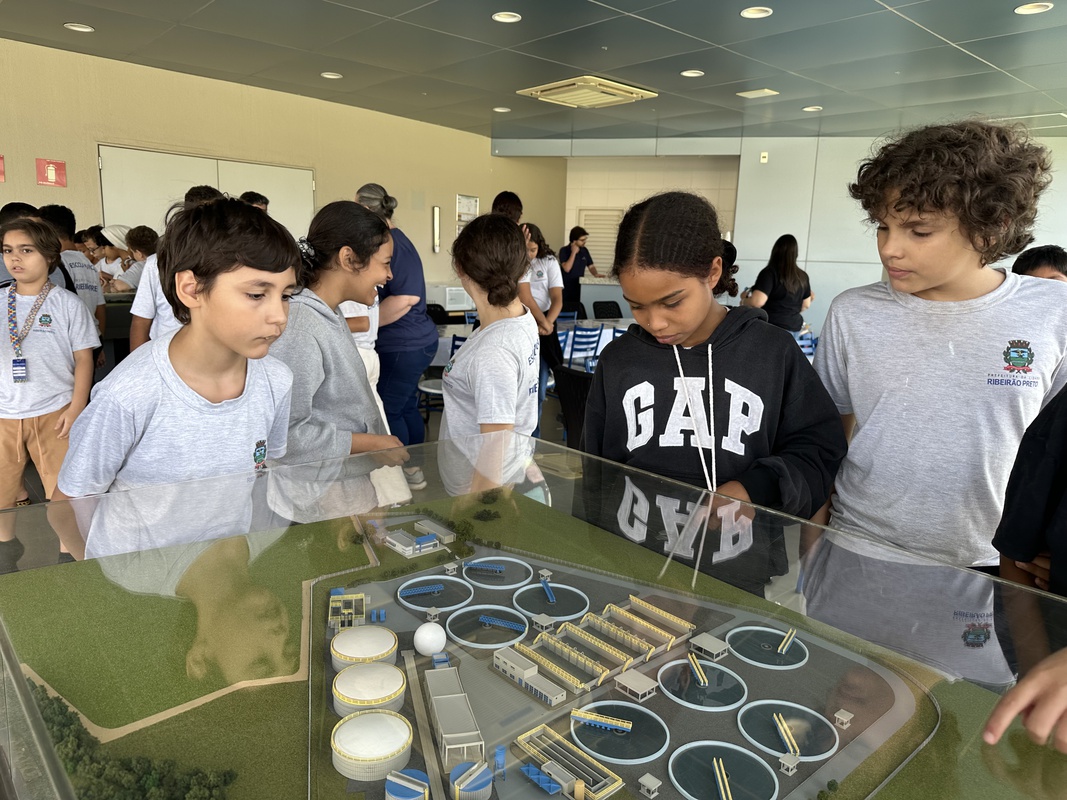 Durante as visitas, as crianças tiveram a oportunidade de descobrir, de perto, como funciona o saneamento básico, desde a coleta e o tratamento de esgoto até a importância do uso consciente da água.